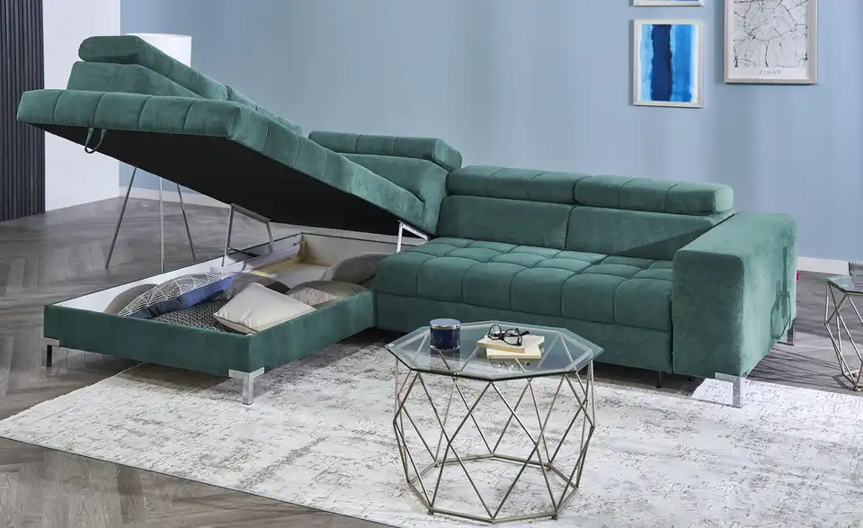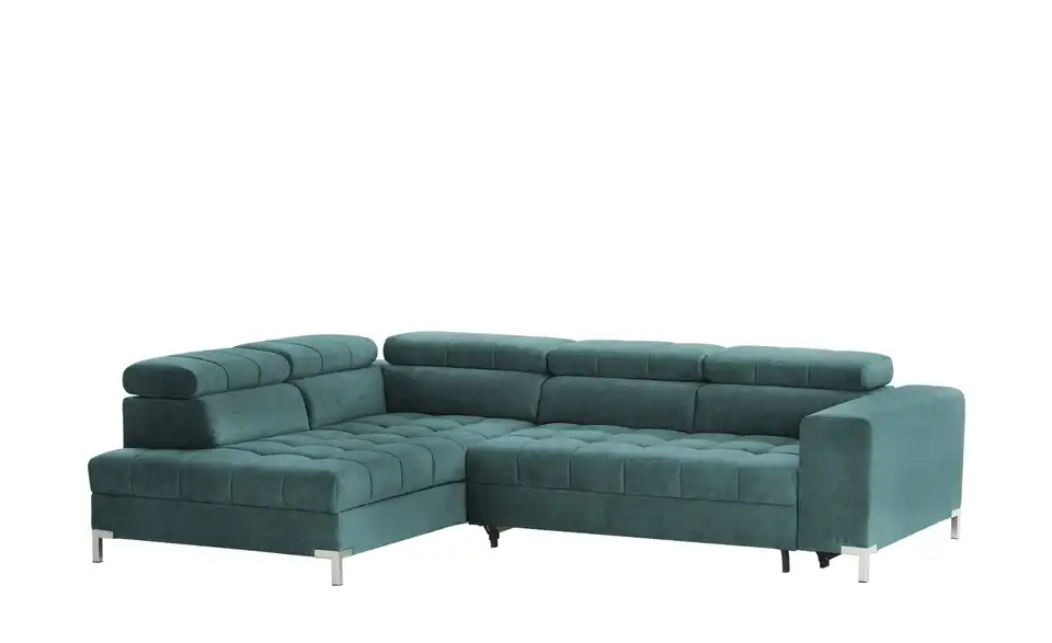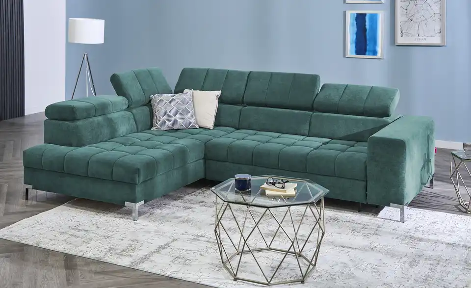 Nach einem stressreichen Arbeitstag ist dieses Ecksofa der ideale Platz zum Erholen. Das Sofa ist aufgrund der Kopfteilverstellung ein richtiges Komfort-Highlight, kann dank des echt bespannten Rückens frei im Raum aufgestellt werden und lädt auch aufgrund des Federkerns sowie der bequemen Polsterung aus Schaumstoff zum Relaxen ein. Das Gestell aus Metall ist das Fundament des Sitzmöbels. Das Sofa dient durch den im Lieferumfang enthaltenen Bettkasten als Stauraummöbel, nimmt 284 x 97 x 200 cm ein und lädt mit der geräumigen Sitztiefe von 62 cm zum Verweilen ein. Ob beim Fernsehabend oder mit einem guten Buch – mit dieser Couch sind Sie für alle Lagen bereit.Lieferung & Versand
