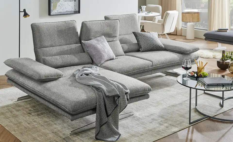 Hinsetzen, zurücklehnen und entspannen: Das Ecksofa Broadway schafft ein Mehr an Gemütlichkeit. Die Sitztiefenverstellung macht aus dem Sitzmöbel ein absolutes Komfort-Highlight. Diese Couch der Marke W.SCHILLIG lädt auch dank des Federkerns sowie der Polsterung aus Kaltschaum zum Entspannen ein. Der Rücken des Sofas ist echt bezogen, sodass es auch mitten im Raum platziert werden kann. Bei dem Material des Gestelles handelt es sich um Metall. Das Modell Broadway nimmt insgesamt 291 x 94 x 164 cm ein. Lehnen Sie sich bequem zurück und lassen Sie sich von dieser Couch verwöhnen.Lieferung & Versand
