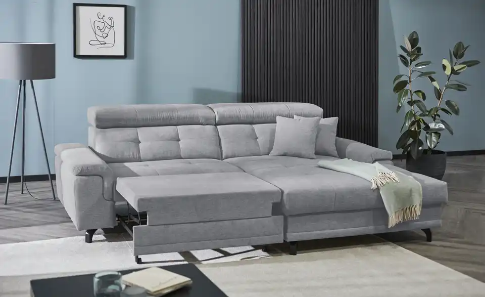 Das Ecksofa Frieda garantiert ein äußerst gemütliches Wohngefühl. Das Sofa ist dank der Kopfteilverstellung extrem komfortabel, hat eine Polsterung aus Kaltschaum für das maximale Wohlfühlerlebnis und verfügt über einen echt bezogenen Rücken, sodass es auch mitten im Raum aufgestellt werden kann. Das Fundament der Couch bildet ein Gestell, das aus Metall besteht. Das Modell Frieda dient aufgrund des integrierten Bettkastens als Stauraummöbel und nimmt 258 x 87 x 180 cm ein. Dieses Sofa wertet Ihr Zuhause optisch wie funktionell auf.Lieferung & Versand
