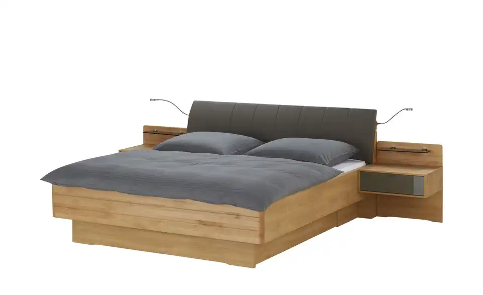 - Lieferumfang / mitgeliefertes ZubehörBettanlage inklusive Nachtschrank-Paar schwebend mit je einem Schubkasten