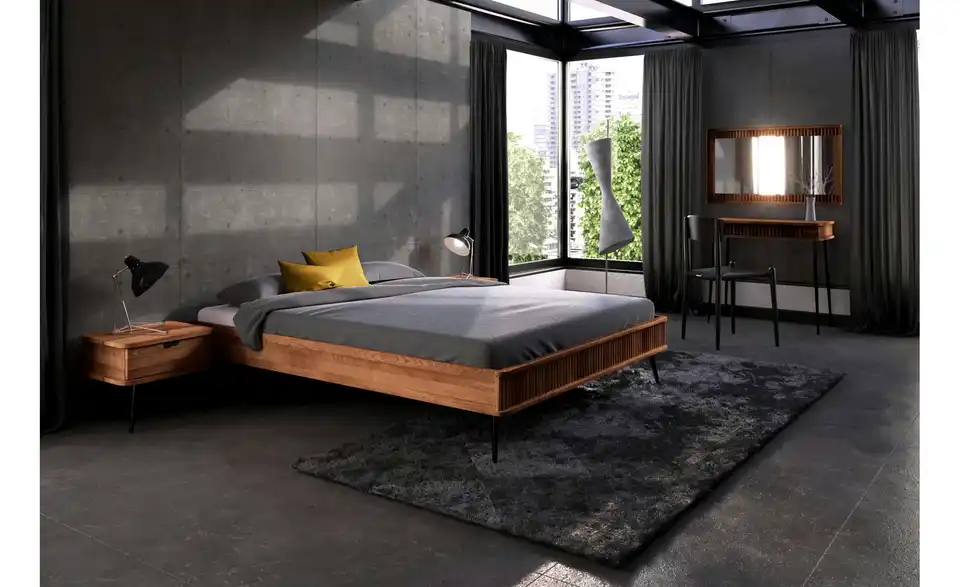 - Bett aus Massivholz mit Füßen im Industrial Style