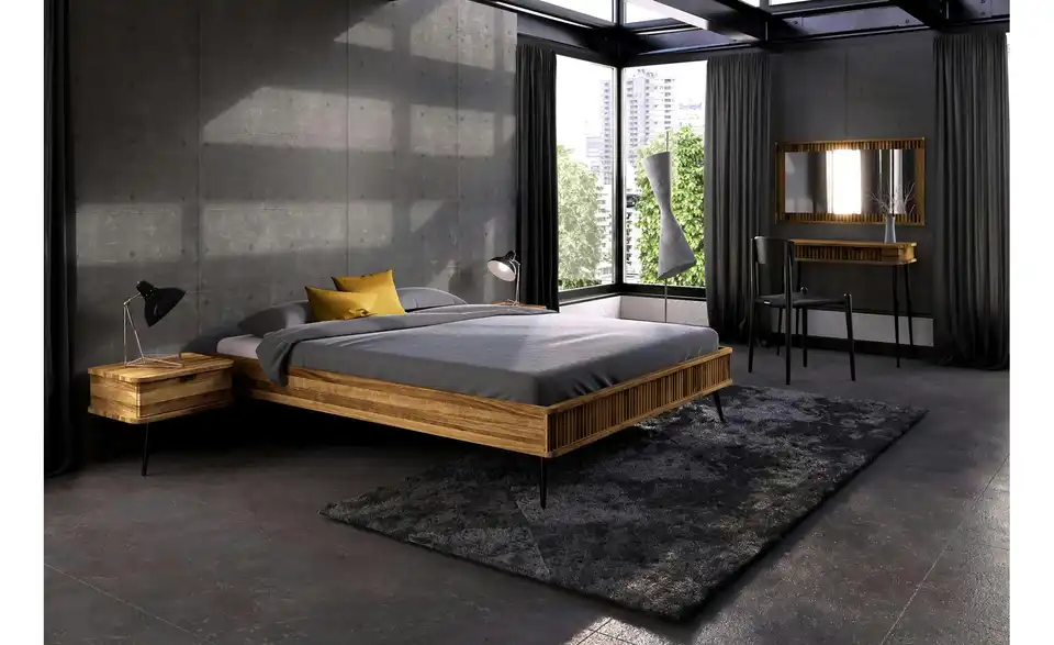 - Bett aus Massivholz mit Füßen im Industrial Style