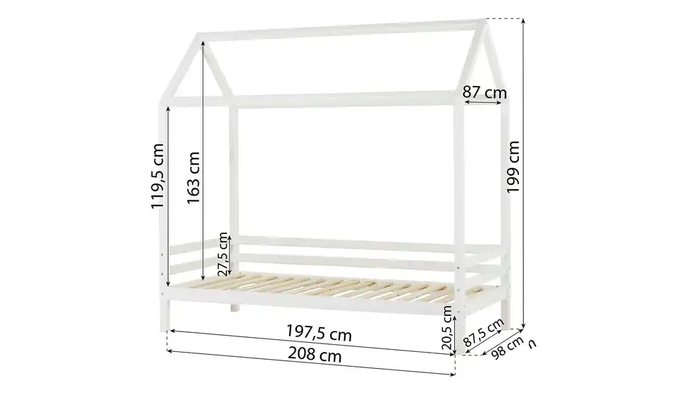 - Lieferumfang / mitgeliefertes ZubehörHausbett bestehend aus Kinderbett/Bettliege und Hausbett-Modul 90x200 cm, Weiß