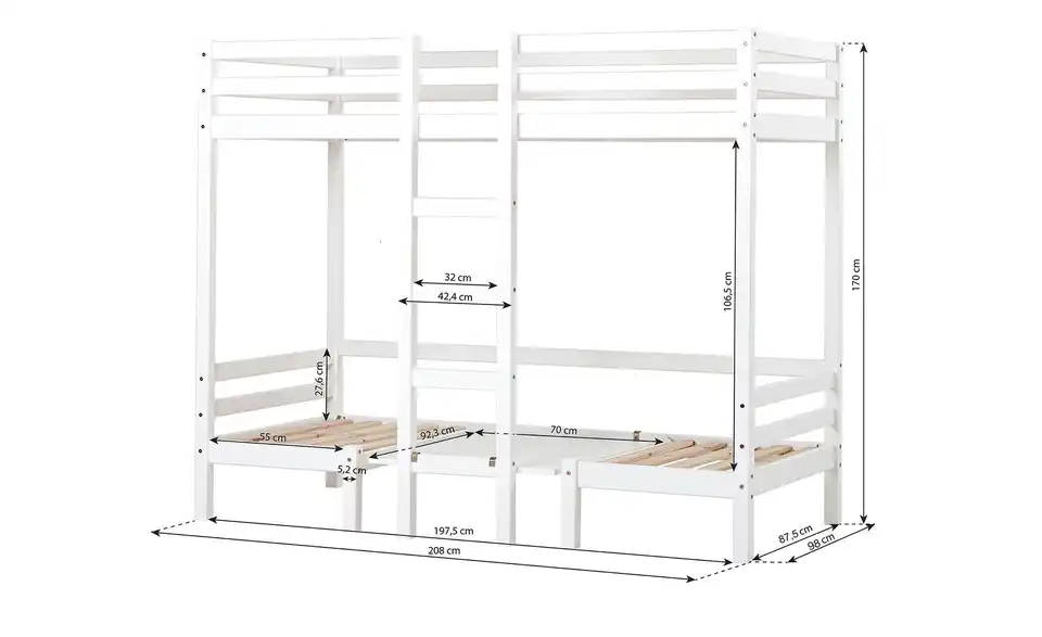 - Lieferumfang / mitgeliefertes ZubehörJUMBO Etagenbett Stockbett mit Sitzgruppe umbaubar zu Bett, 90x200 cm, Weiß