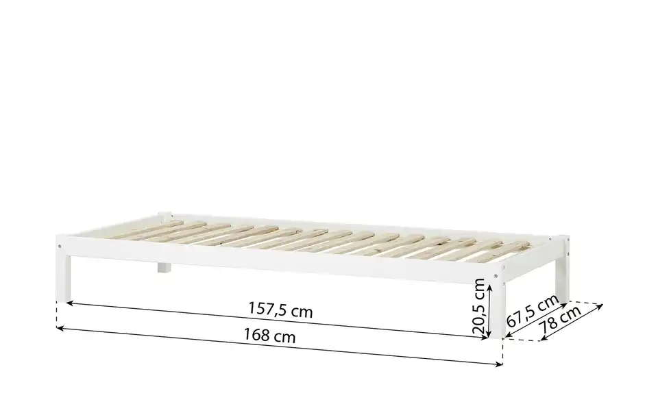 - Lieferumfang / mitgeliefertes ZubehörFlachbett / Bettliege / Kinderbett in 70x160 cm, Weiß