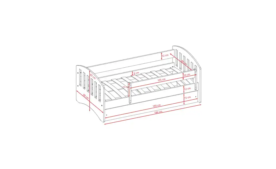 - Lieferumfang / mitgeliefertes ZubehörMontagesatz (Schrauben, Dübel), Matratzenrahmen, Schubladenführungen, Matratze