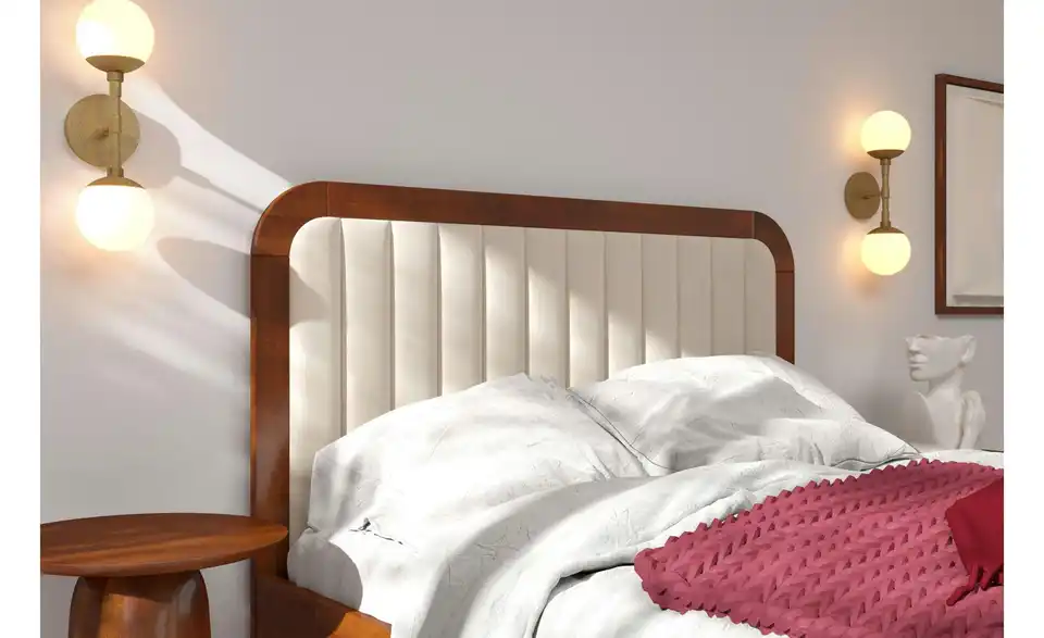 - Lieferumfang / mitgeliefertes ZubehörMassivholzbettgestell mit gepolstertem Kopfteil