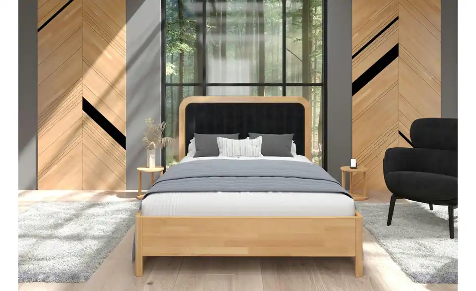 - Lieferumfang / mitgeliefertes ZubehörMassivholzbettgestell mit gepolstertem Kopfteil