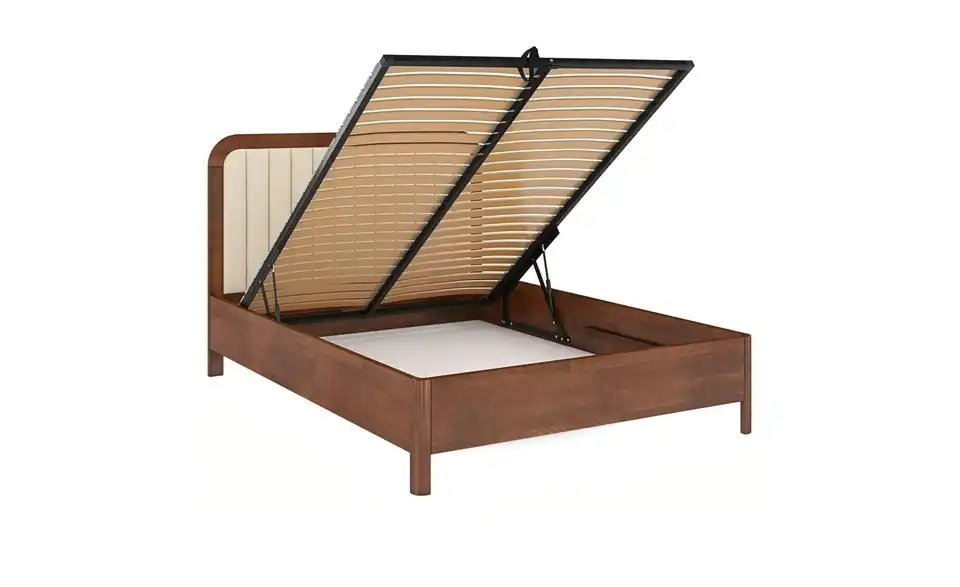 - Mehr zu MaterialMassivholzbett aus Buchenleimholz, nussbaumfarben lackiert