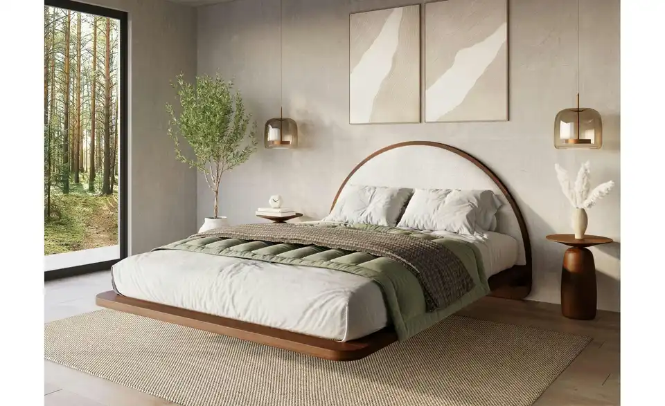 - Mehr zu MaterialMassivholzbett aus Buchenleimholz, nussbaumfarben lackiert