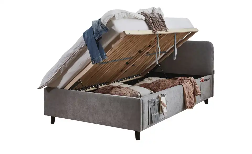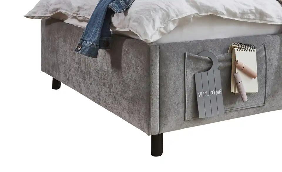 - Zwei praktische Seitentaschen am Bett für Handy, Tablet oder Bücher