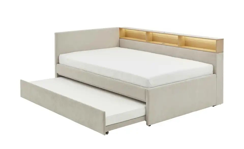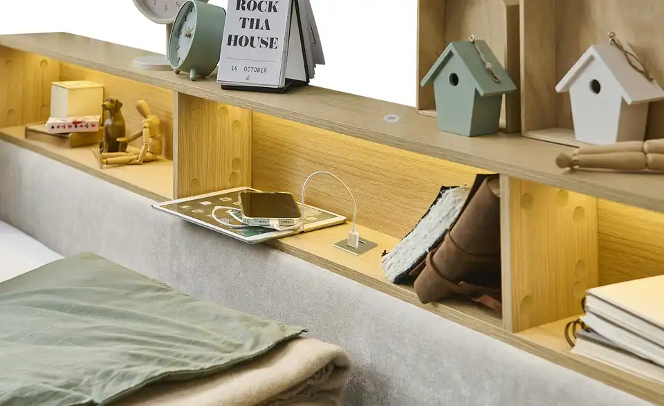 - Ausstattung / FunktionBettschubkastenausziehbarEingebauter USB-AnschlussBeleuchtung