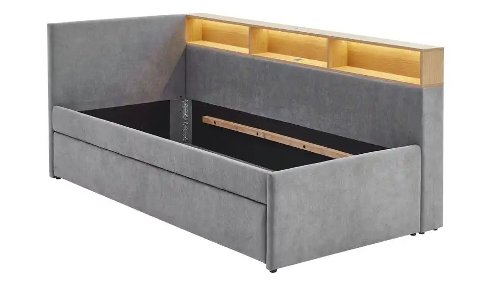 - Ausstattung / FunktionBettschubkastenausziehbarEingebauter USB-AnschlussBeleuchtung