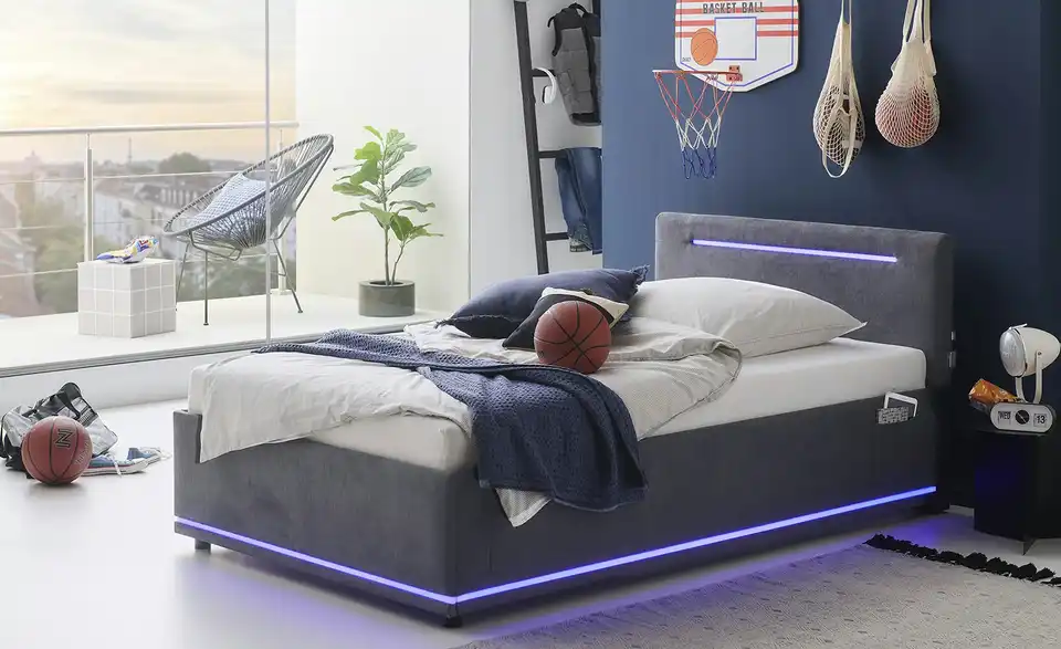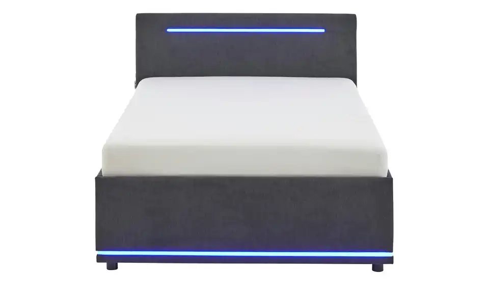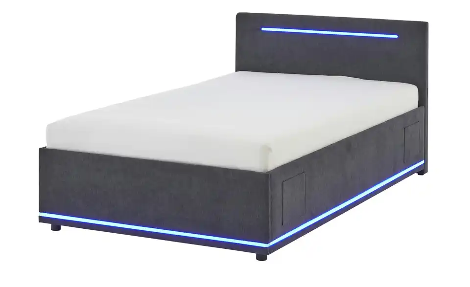 - Modernes Polsterbett mit LED-Beleuchtung in Blau