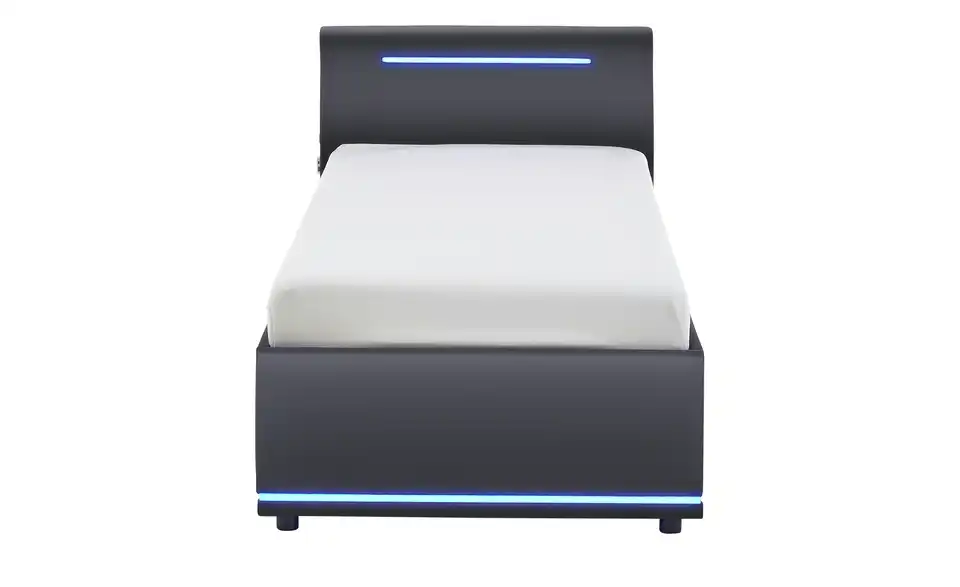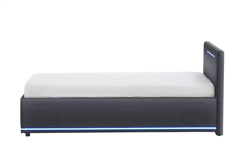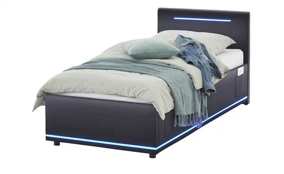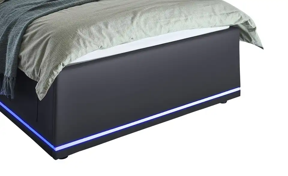 - Modernes Polsterbett mit LED-Beleuchtung in Blau