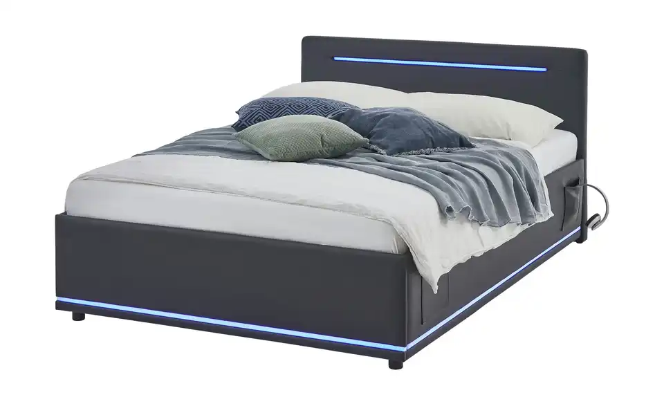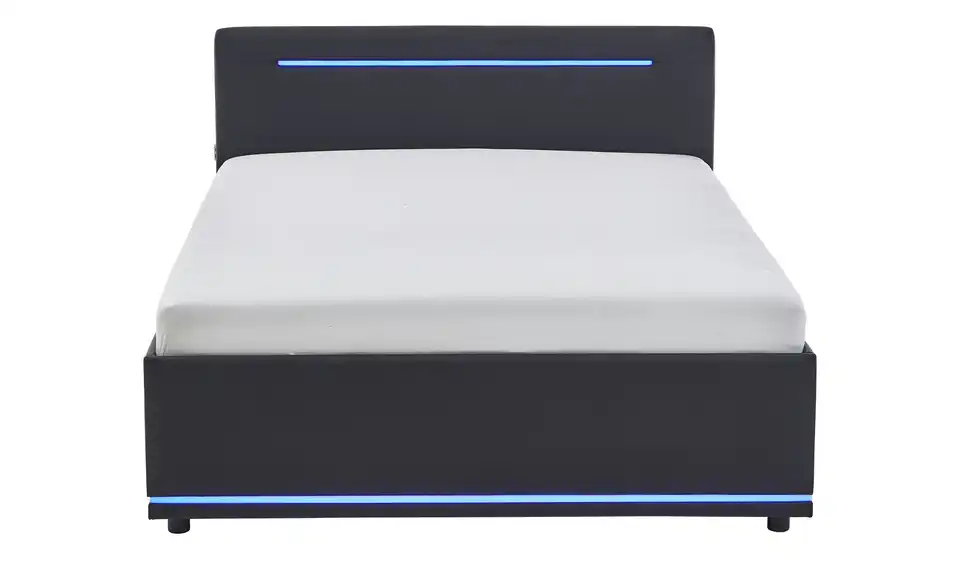 - Modernes Polsterbett mit LED-Beleuchtung in Blau