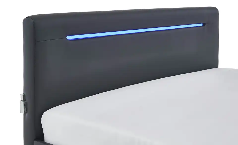 - Modernes Polsterbett mit LED-Beleuchtung in Blau