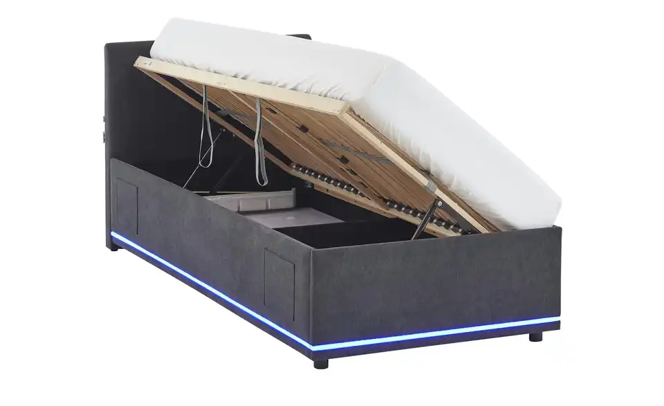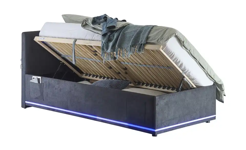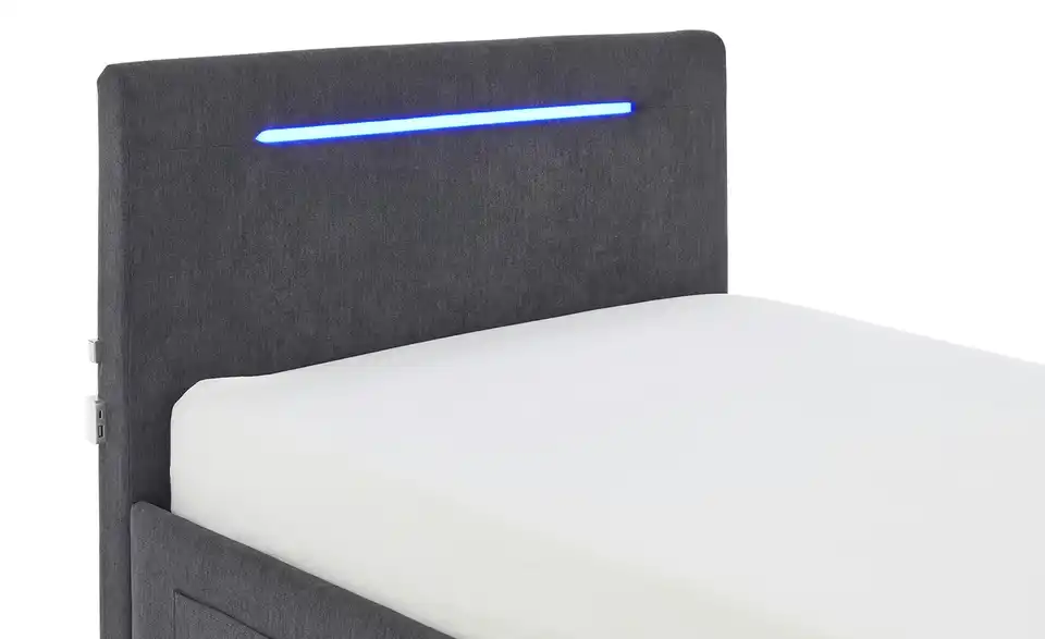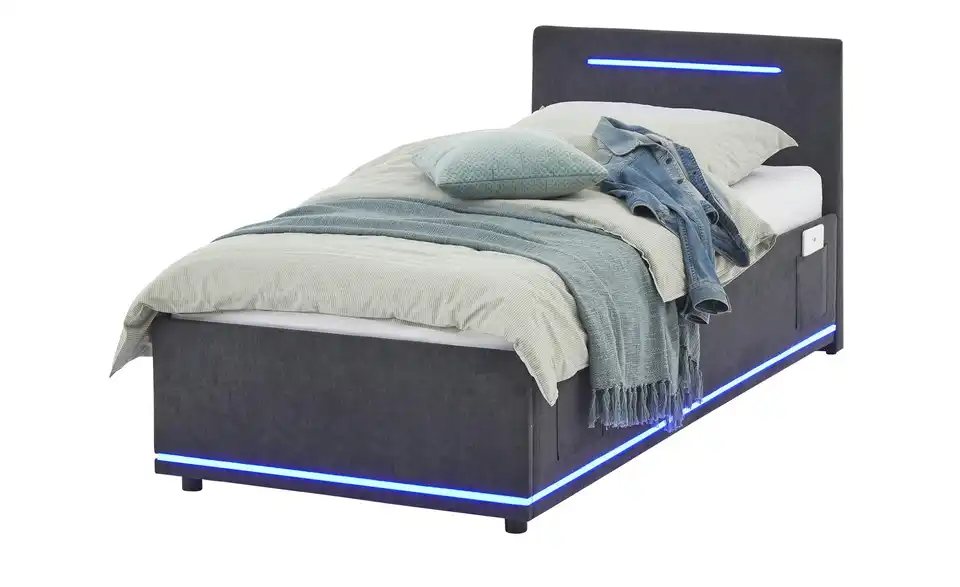 - Modernes Polsterbett mit LED-Beleuchtung in Blau
