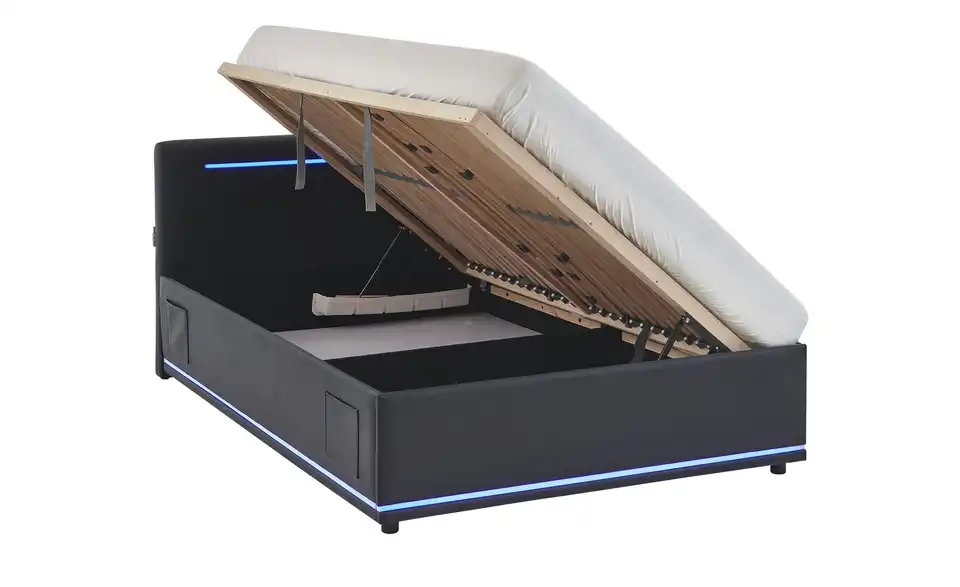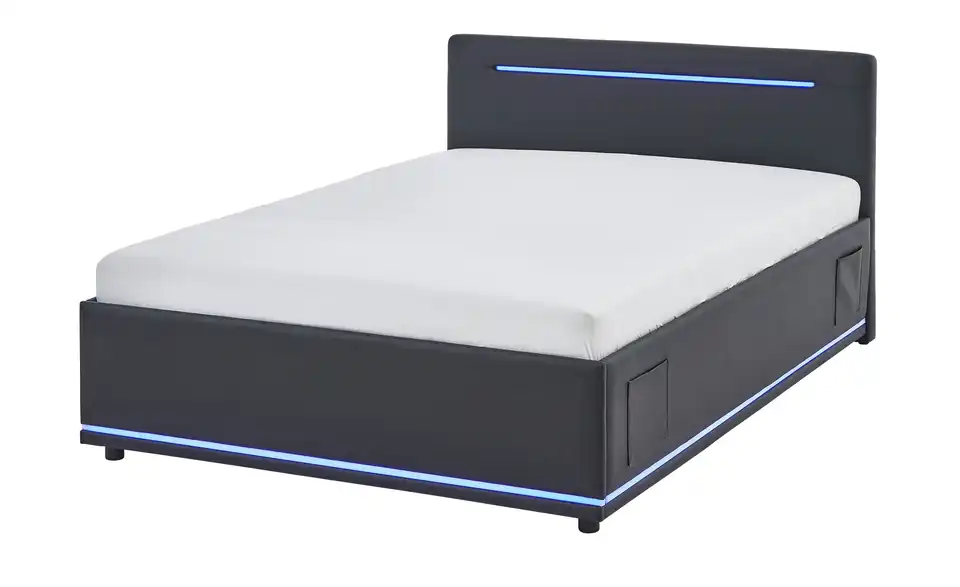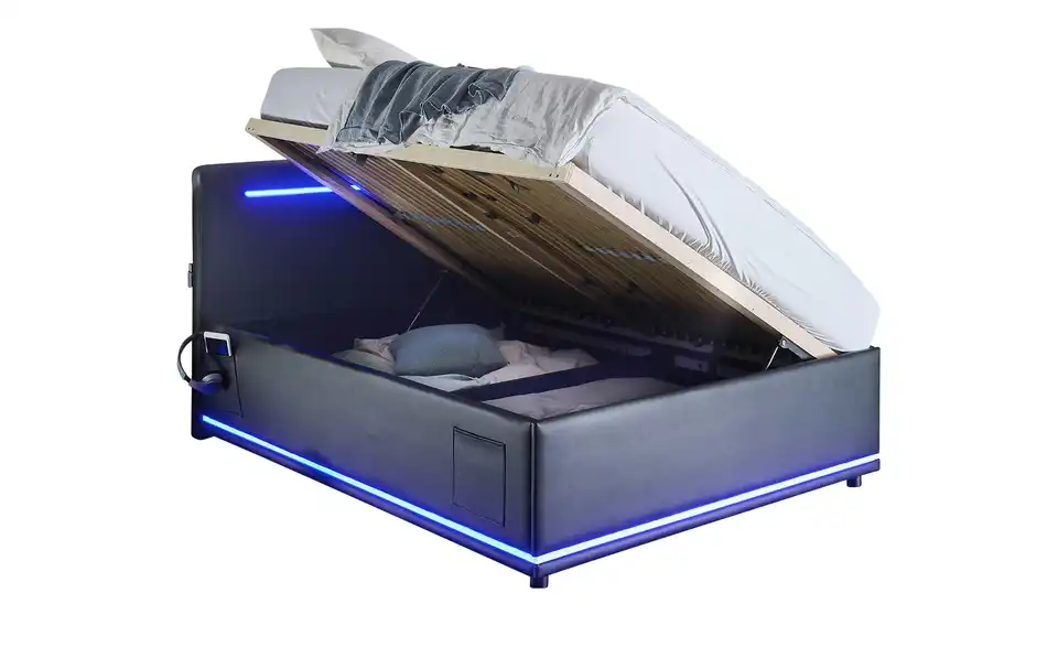- Modernes Polsterbett mit LED-Beleuchtung in Blau