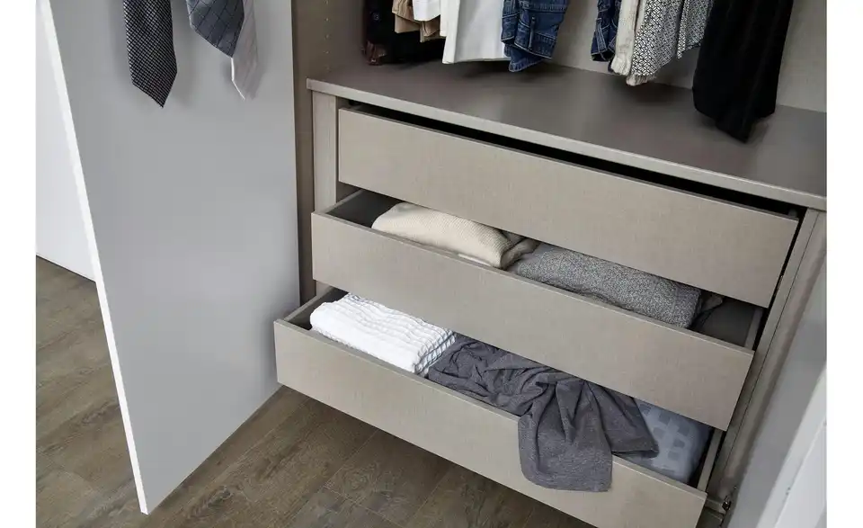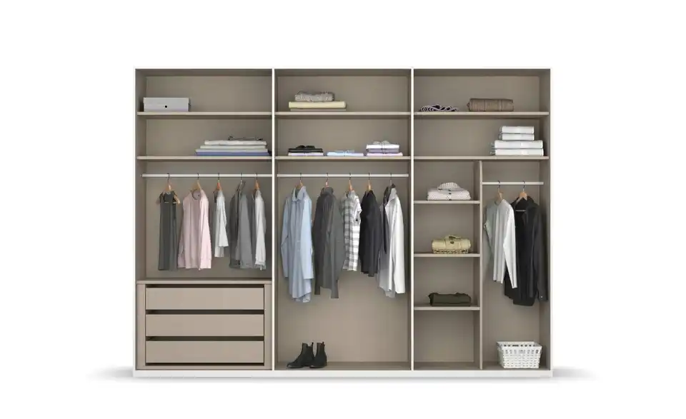 - Lieferumfang / mitgeliefertes Zubehör6 Fachböden, 3 Kleiderstangen, 3er Schubkasteneinsatz, Inneneinteilung, Innenspiegel, Krawattenhalter