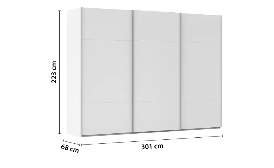 - Mehr zu AusführungDreitüriger Schwebetürenschrank inkl. ZubehörBestehend aus drei Elementen (je ca. 100 cm breit)