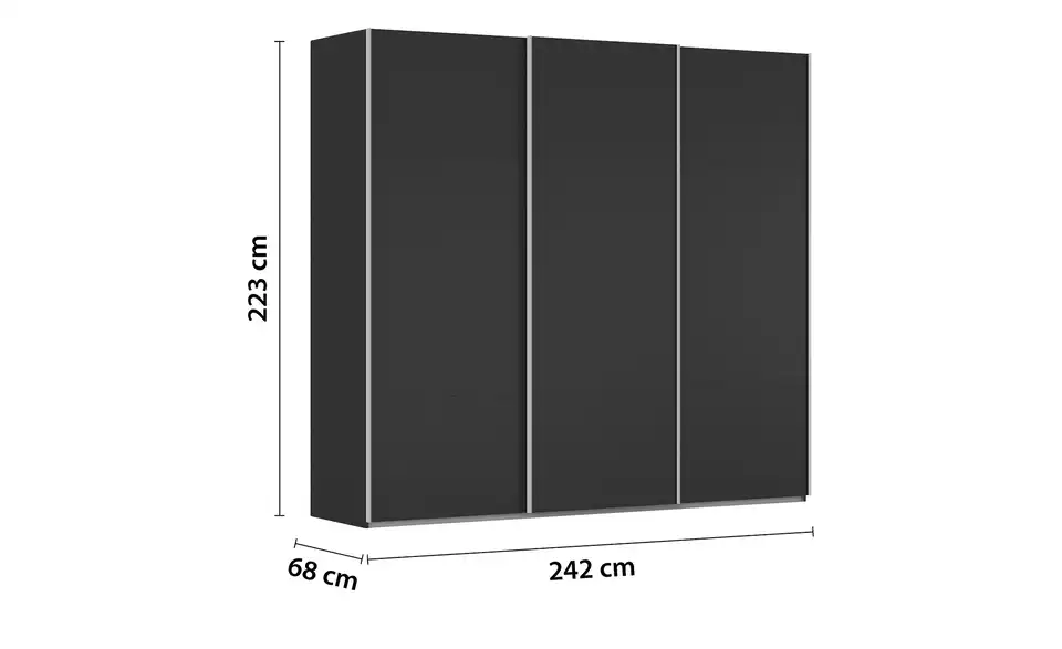 - Mehr zu AusführungDreitüriger Schwebetürenschrank inkl. ZubehörBestehend aus drei Elementen (je ca. 80 cm breit)