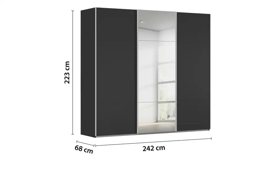- Mehr zu AusführungDreitüriger Schwebetürenschrank mit Spiegel inkl. ZubehörBestehend aus drei Elementen (je ca. 80 cm breit)