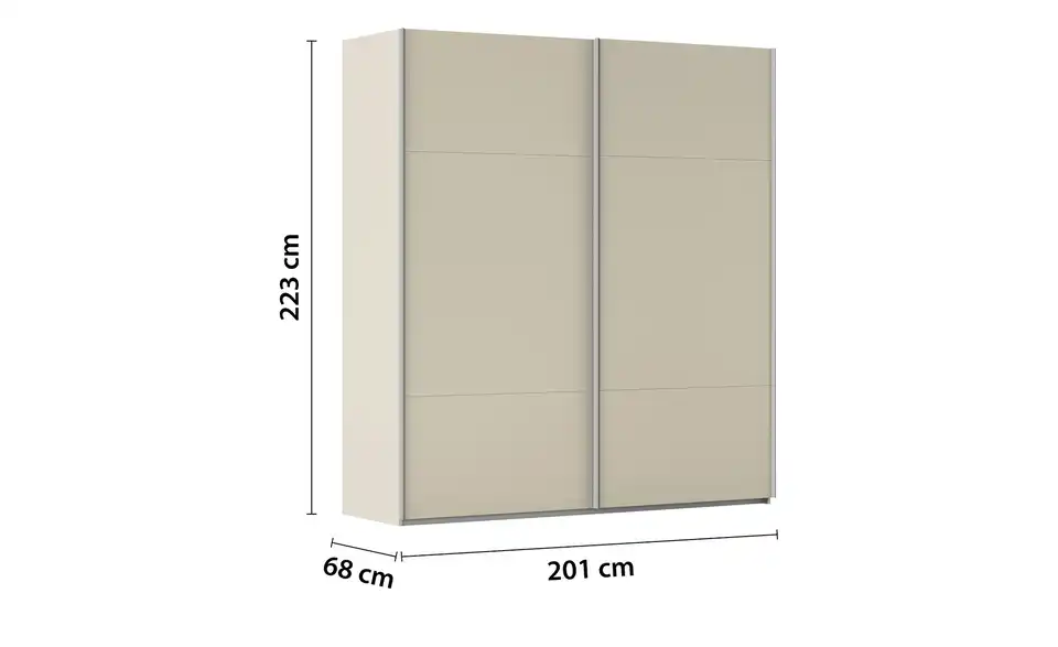 - Mehr zu AusführungZweitüriger Schwebetürenschrank inkl. ZubehörBestehend aus zwei Elementen (je ca. 100 cm breit)
