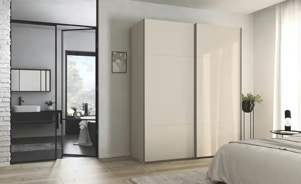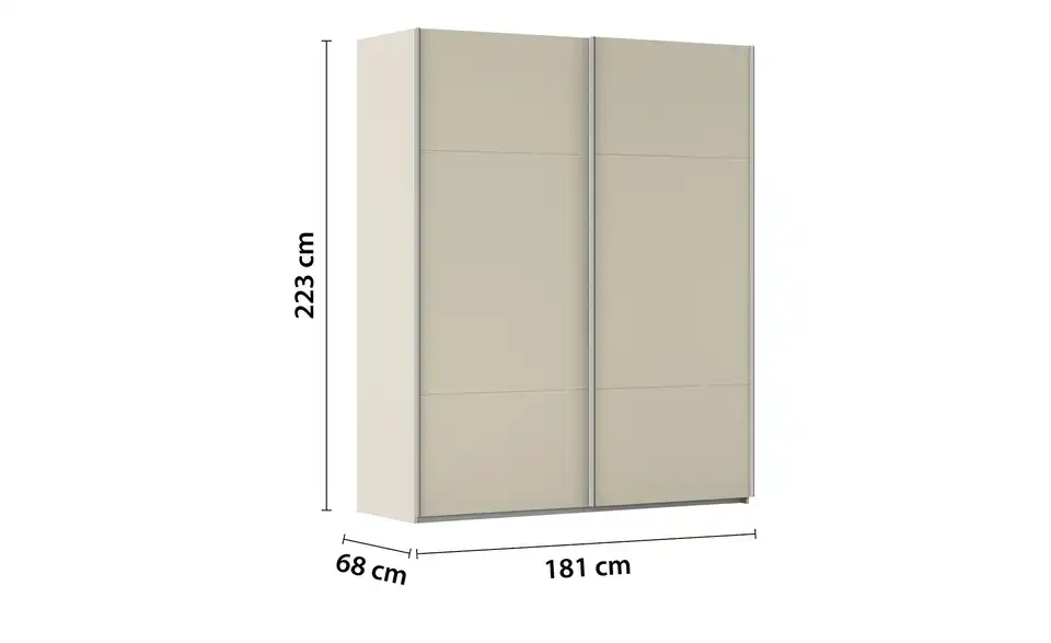 - Mehr zu AusführungZweitüriger Schwebetürenschrank inkl. ZubehörBestehend aus zwei Elementen (je ca. 90 cm breit)