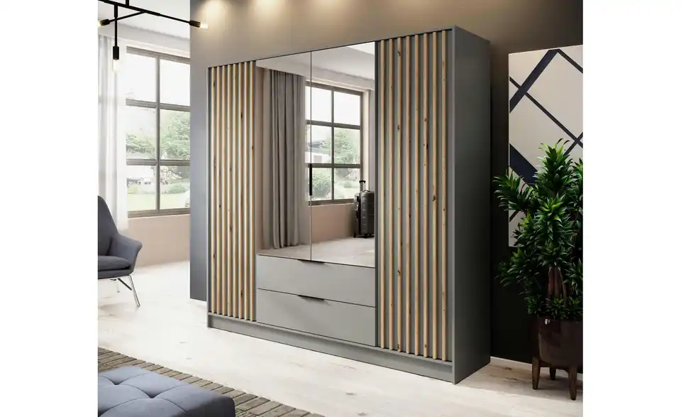 - Praktischer Kleiderschrank mit Drehtüren und Schubladen