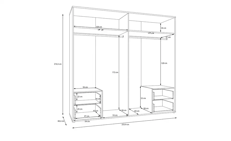 - Gesamtbreite223,9 cm