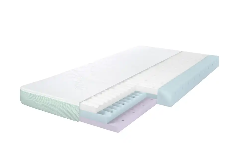 - Mehr zu Ausstattung / FunktionBelüftung in KantenTrittfeste Kante Rundum - 8 cmJuniorseite glatte FlächeBabyseite Wellentäler (unterstützen Punktelastizität)Reißverschlus rundum3-lagiger Matratzenkern