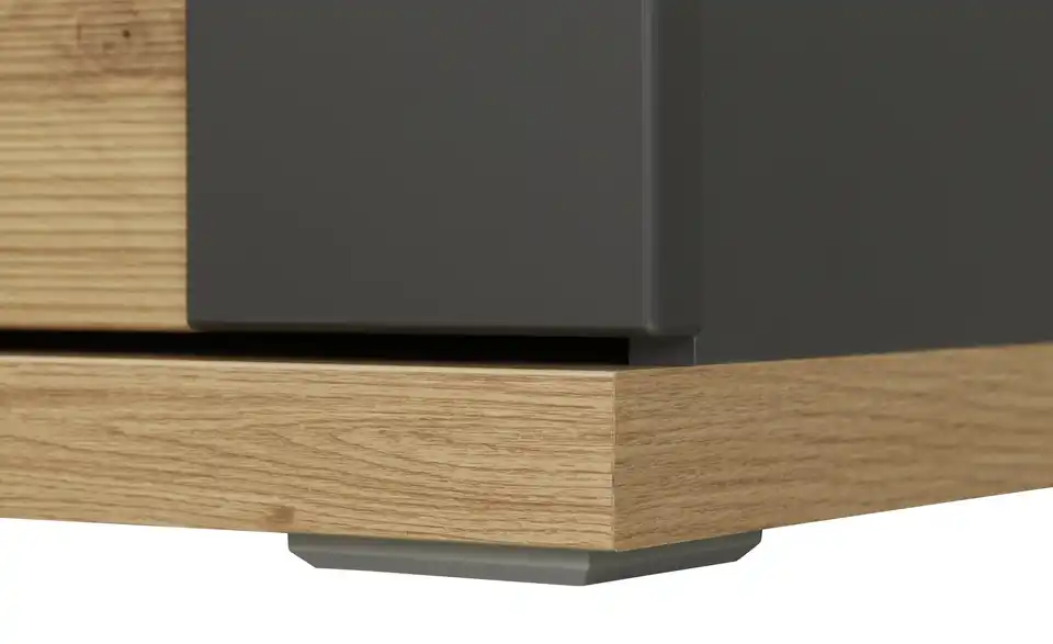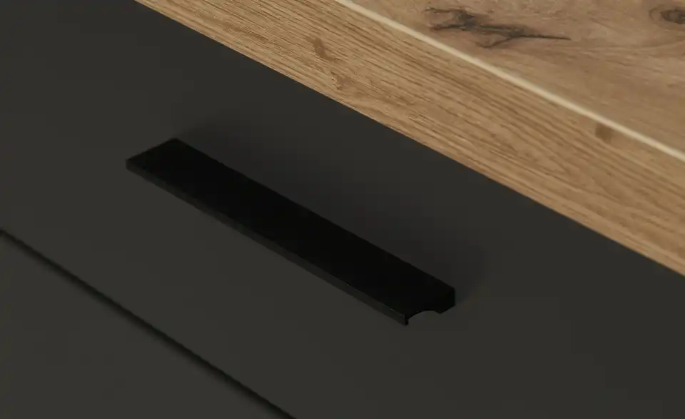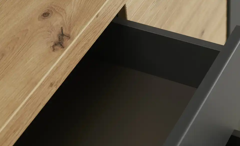 - Mehr zu MaterialKorpus aus Holzwerkstoff melaminbeschichtet in AnthrazitOber- und Unterplatte aus Holzwerkstoff melaminbeschichtet in Eiche Artisan (Nachbildung)Front aus Holzwerkstoff tiefgezogen in Anthrazit mattFrontabsetzung in Eiche Artisan geschroppt (Nachbildung)
