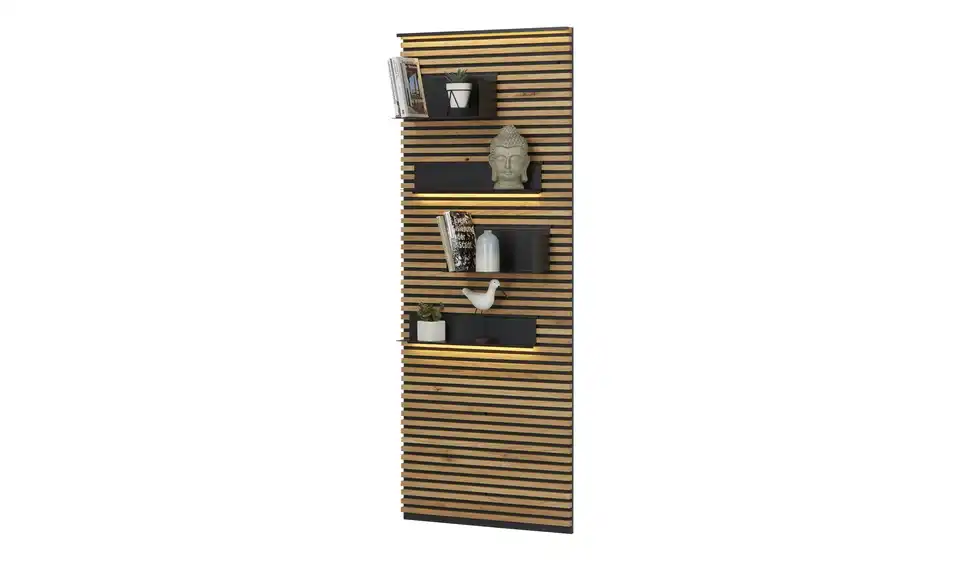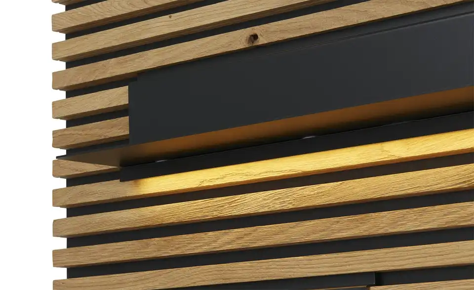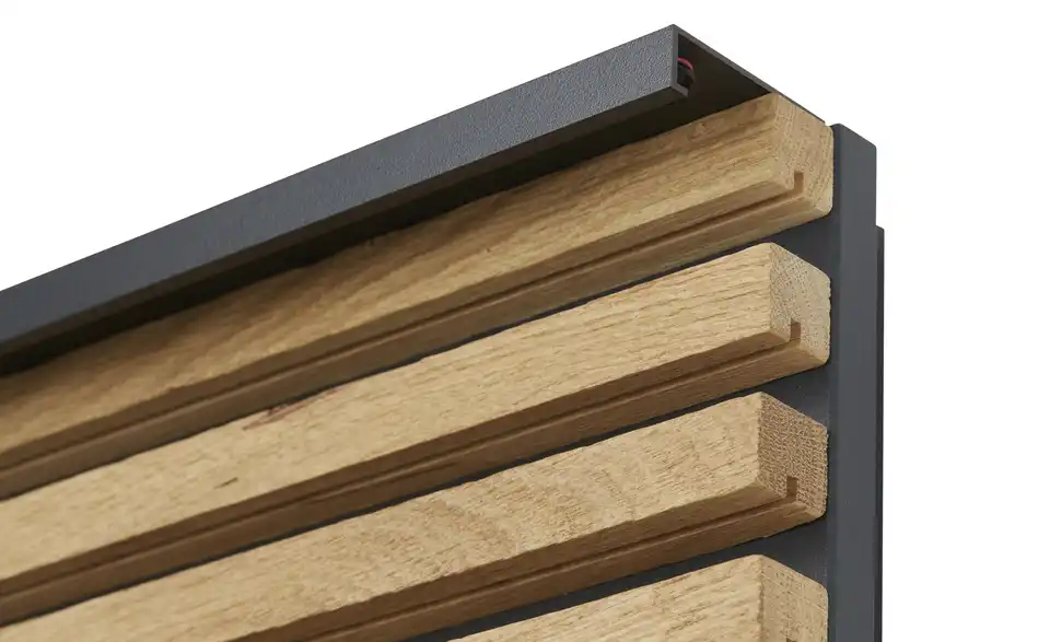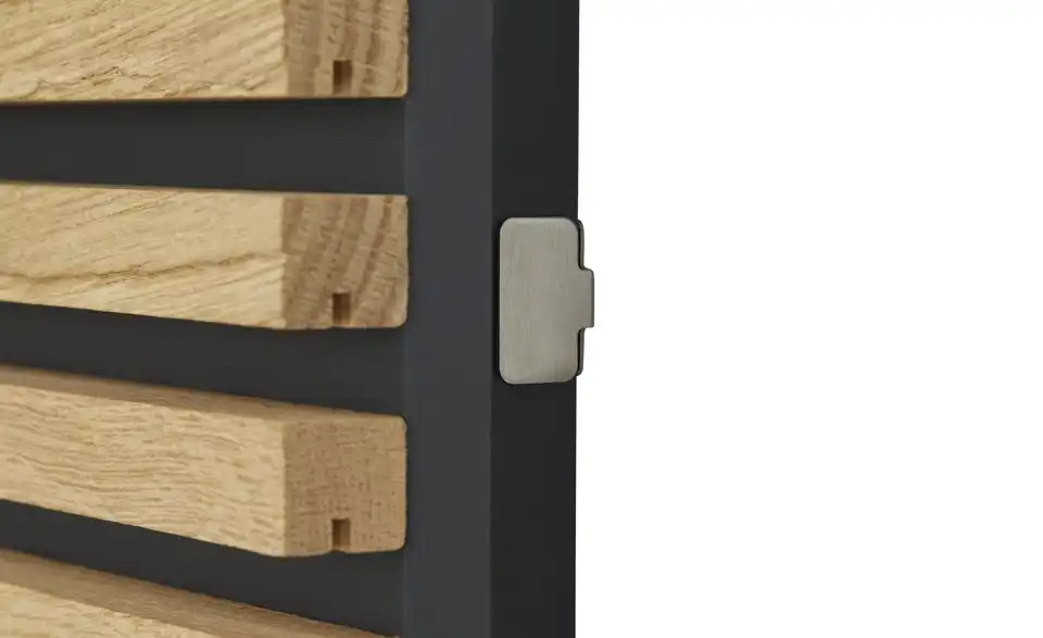 - Mehr zu MaterialLamellenpaneel aus Kerneiche natur gebürstetRegalböden aus Metall in Anthrazit
