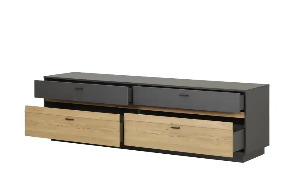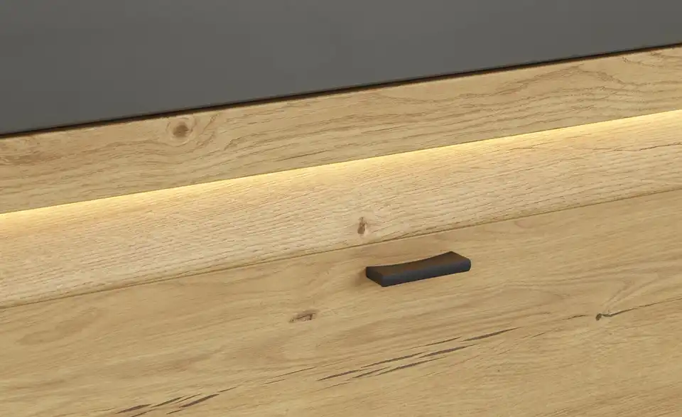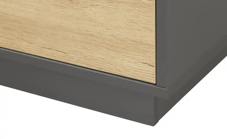 - Mehr zu MaterialKorpus und Front aus Holzwerkstoff beschichtet in AnthrazitFrontabsetzung aus Holzwerkstoff beschichtet in Eiche Gustavson (Nachbildung)