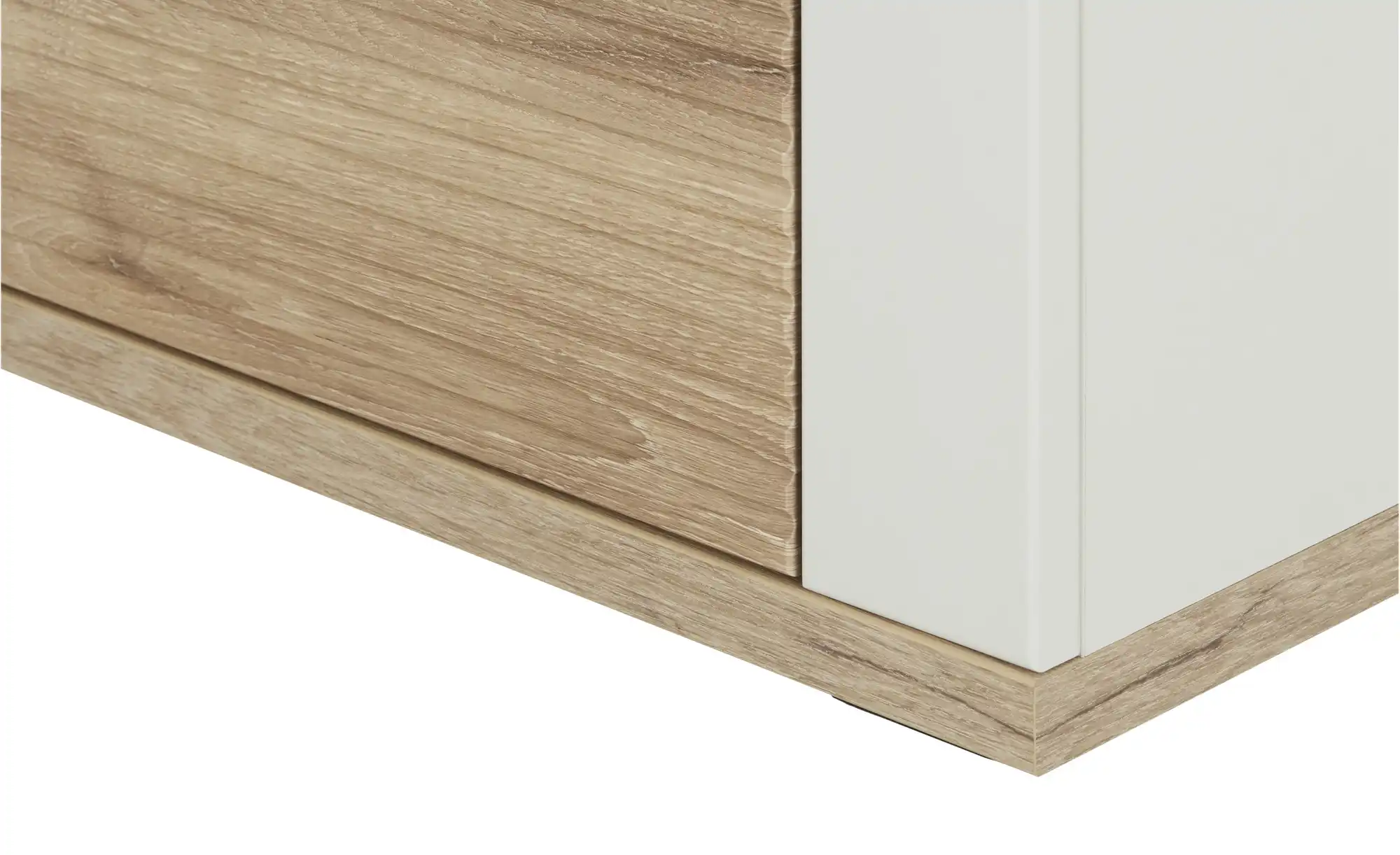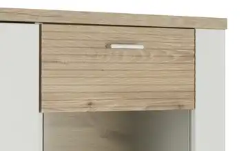 - Mehr zu MaterialFront und Korpus in Hellgrau (Modern White)Absetzung aus Holzwerkstoff tiefgezogen in Eiche Nachbildung (Viking Oak)