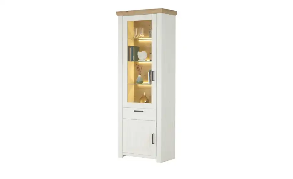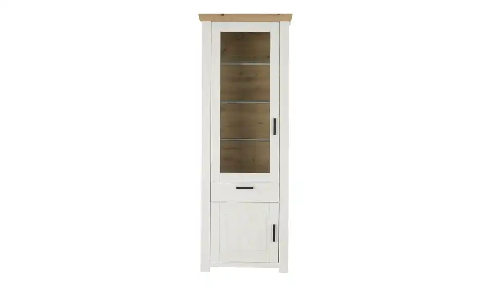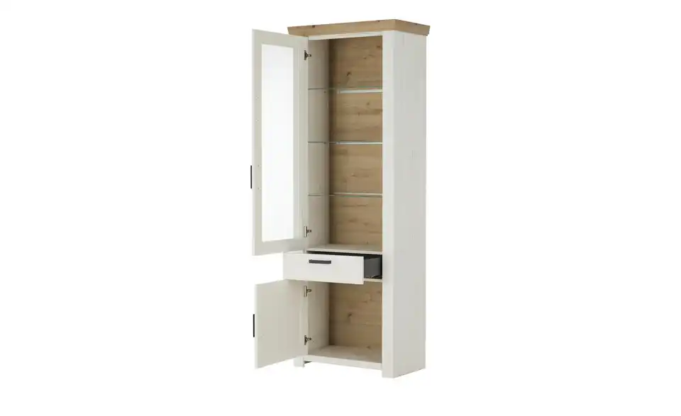 - Mehr zu MaterialKorpus aus Holzwerkstoff beschichtet in Pinie Aurelio (Nachbildung)Front aus Holzwerkstoff tiefgezogen in Pinie Aurelio (Nachbildung)Absetzung aus Holzwerkstoff beschichtet in Eiche Artisan (Nachbildung)Glastür aus SicherheitsglasGriffe aus Metall in Schwarz eloxiert