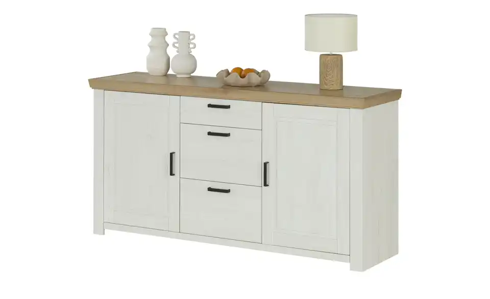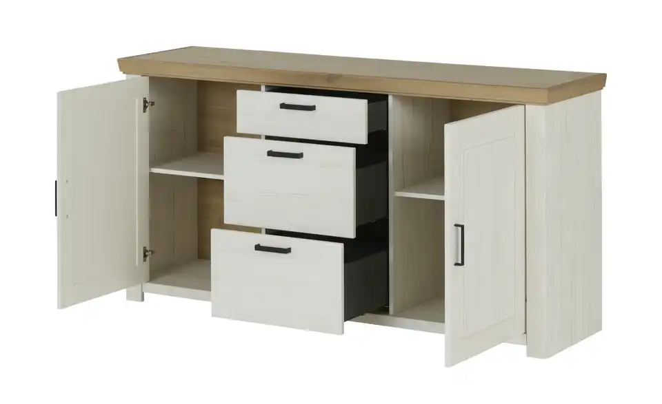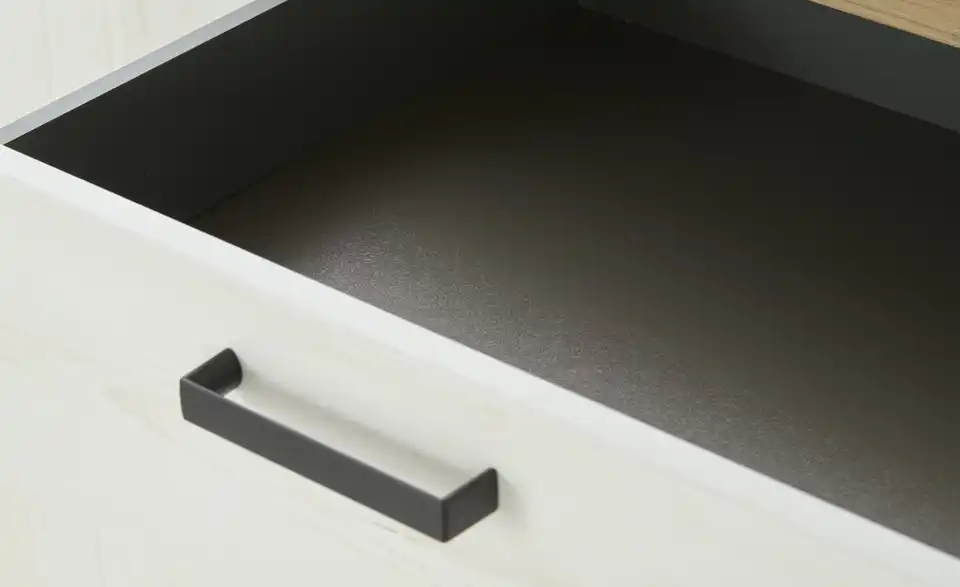 - Mehr zu MaterialKorpus aus Holzwerkstoff beschichtet in Pinie Aurelio (Nachbildung)Front aus Holzwerkstoff tiefgezogen in Pinie Aurelio (Nachbildung)Absetzung aus Holzwerkstoff beschichtet in Eiche Artisan (Nachbildung)Griffe aus Metall in Schwarz eloxiert