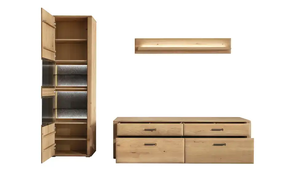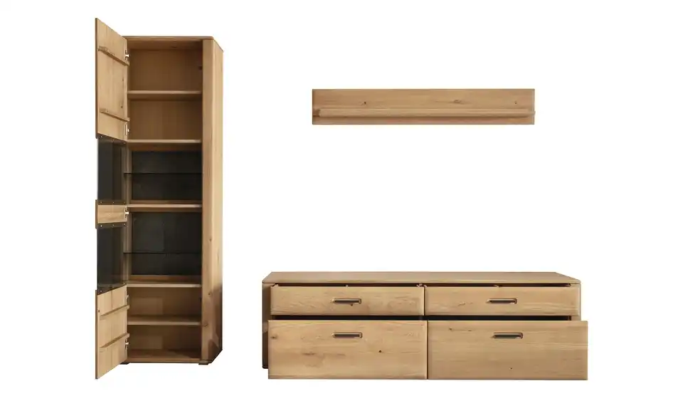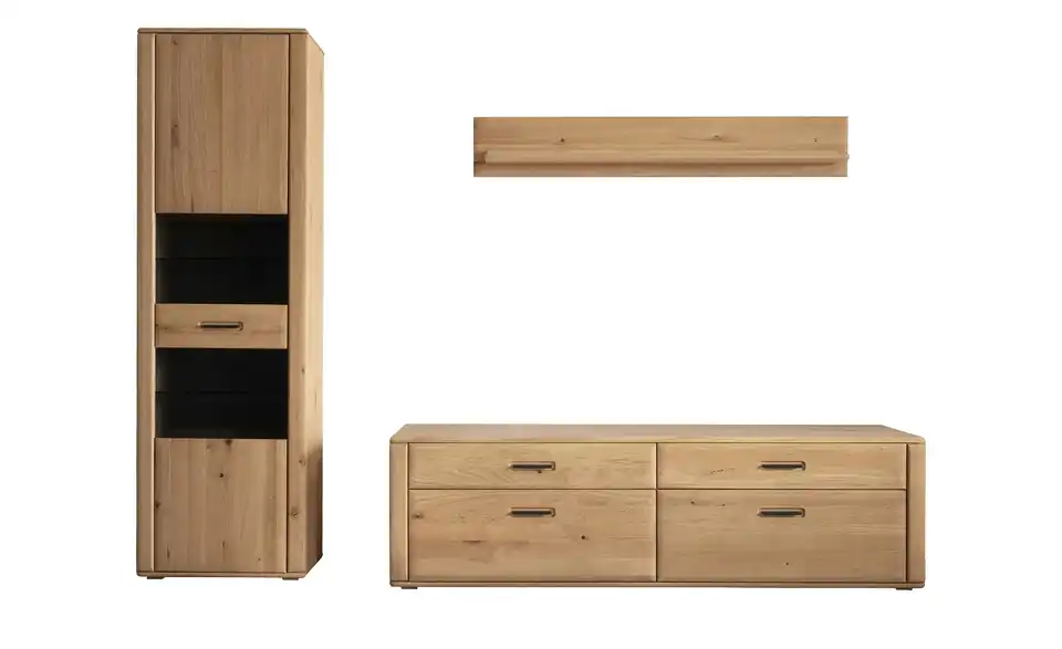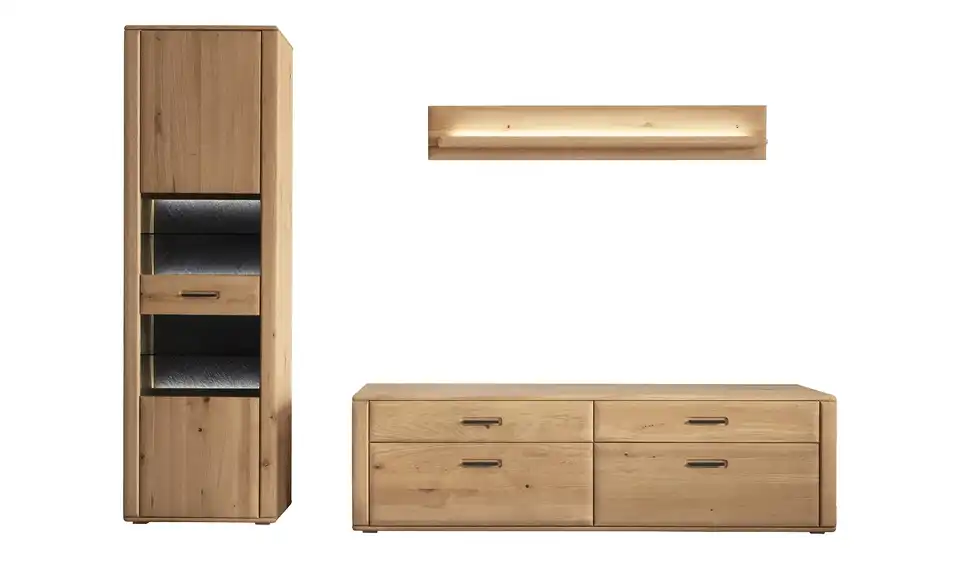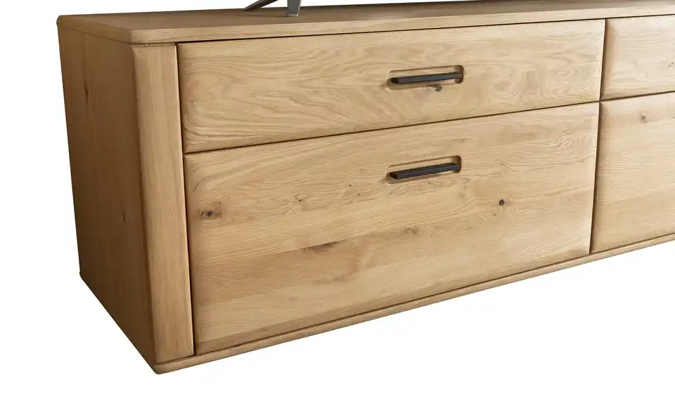 - Mehr zu MaterialFront aus Ast/Balkeneiche massiv mit durchgehender Lamelle in Kristalleiche geöltKorpus aus Ast/Balkeneiche furniert in Kristalleiche geöltGriffe aus Metall in Anthrazitsichtbare Rückwand aus Stein Furnier in Alpin