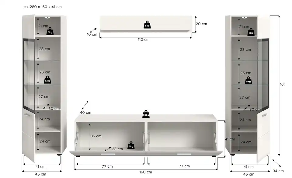 - max. Belastbarkeit je verstellbarem Einlegeboden bis ca.5 kg