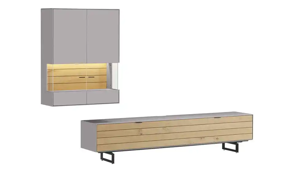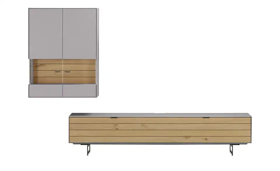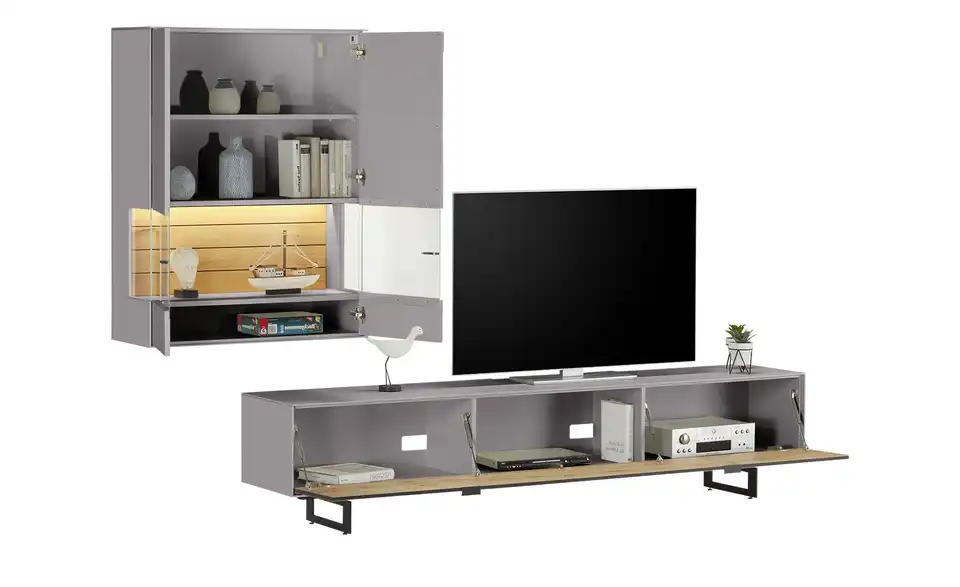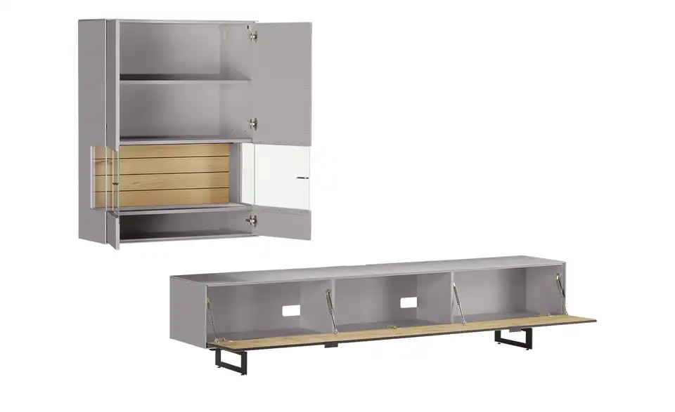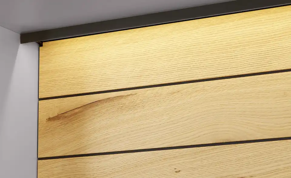 - nicht im Lieferumfang enthaltenLED-Beleuchtung, Zubehör und Rückwand-Akzent in Balkeneiche für Hängevitrine (separat erhältlich)