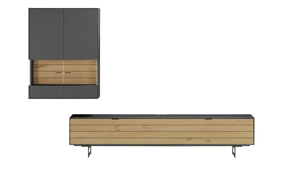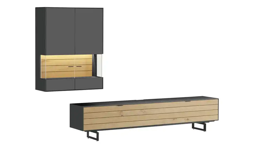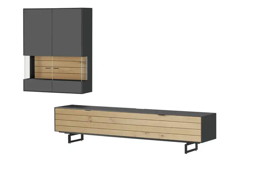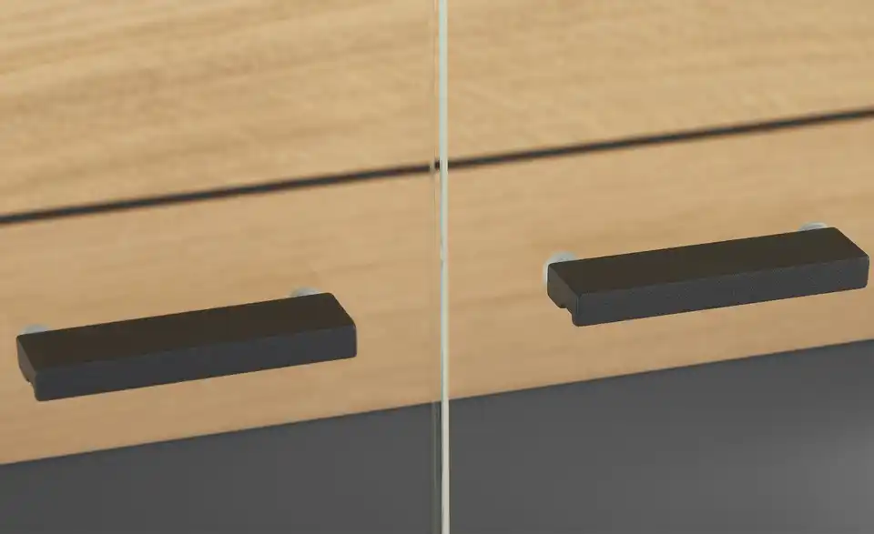 - nicht im Lieferumfang enthaltenLED-Beleuchtung, Zubehör und Rückwand-Akzent in Balkeneiche für Hängevitrine (separat erhältlich)