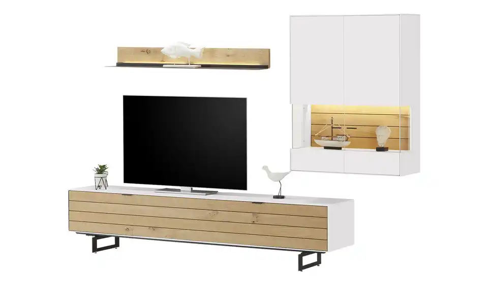 - nicht im Lieferumfang enthaltenLED-Beleuchtung, Zubehör und Rückwand-Akzent in Balkeneiche für Hängevitrine (separat erhältlich)