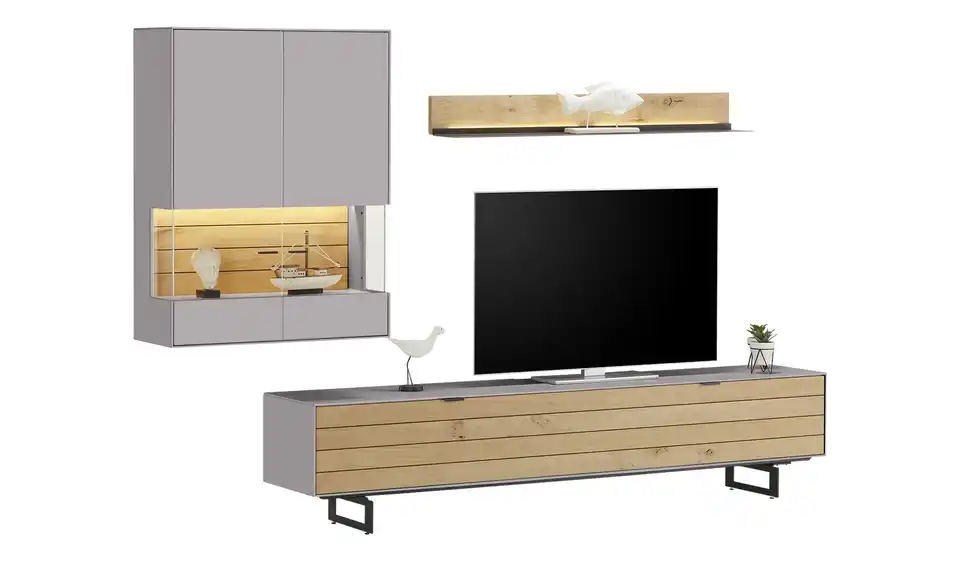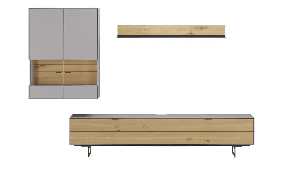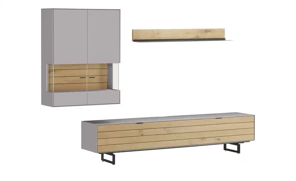 - nicht im Lieferumfang enthaltenLED-Beleuchtung, Zubehör und Rückwand-Akzent in Balkeneiche für Hängevitrine (separat erhältlich)