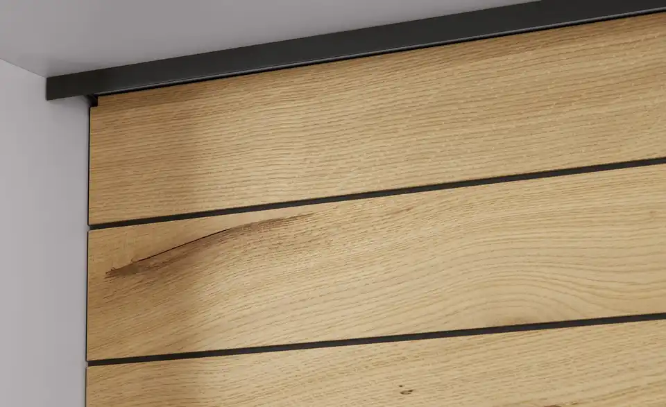 - Mehr zu MaterialAkzentfront aus Balkeneiche-Platten massiv stark gebürstet auf hochwertigem Holzstoffkern