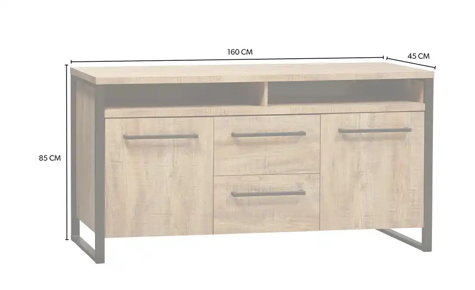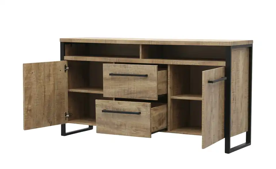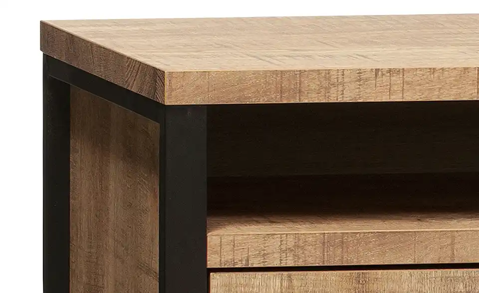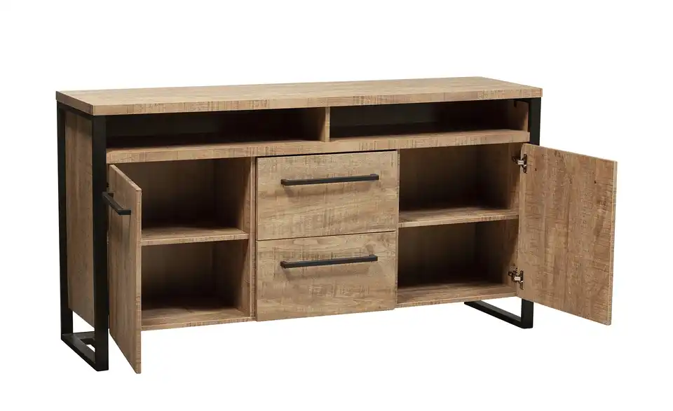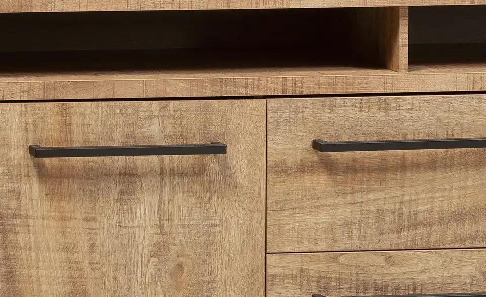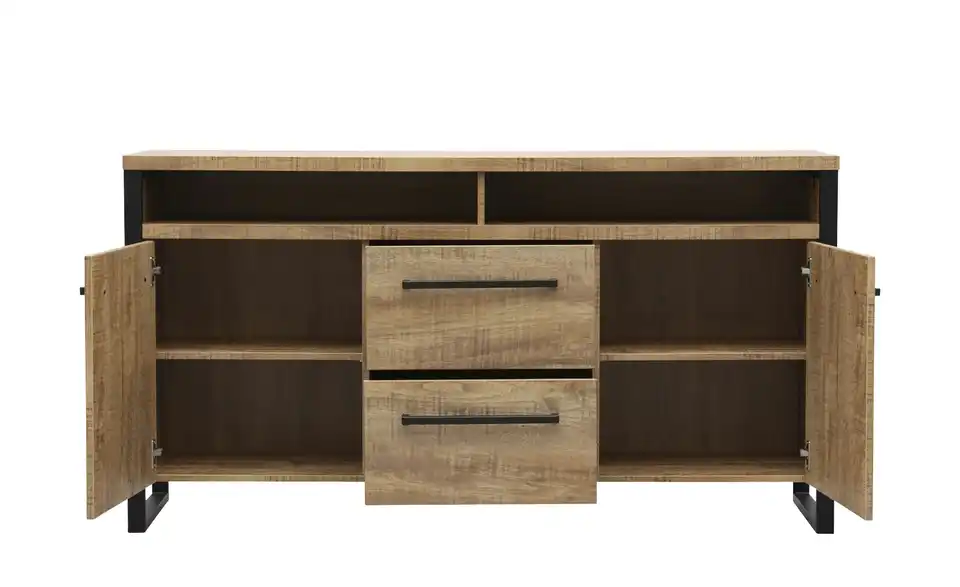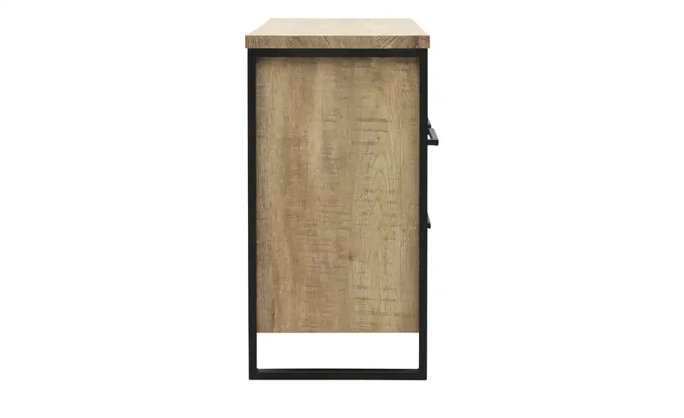 - Mehr zu MaterialKorpus und Front aus Lamulux in TropicKufengestell und Griffe aus Metall in Schwarz