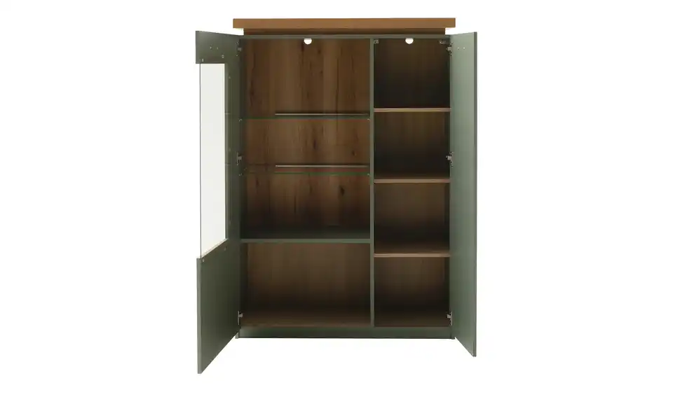 - Mehr zu MaterialKorpus und Front aus Holzwerkstoff melaminbeschichtet in SalbeigrünOberboden aus Holzwerkstoff melaminbeschichtet in Eiche Evoke (Nachbildung)Griffe aus Metall in Schwarzgrau