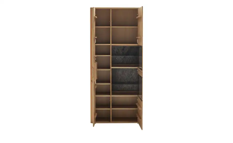 - Mehr zu MaterialFront aus Ast/Balkeneiche massiv mit durchgehender Lamelle in Kristalleiche geöltKorpus aus Ast/Balkeneiche furniert in Kristalleiche geöltGriffe aus Metall in Anthrazitsichtbare Rückwand aus Stein Furnier in Alpin
