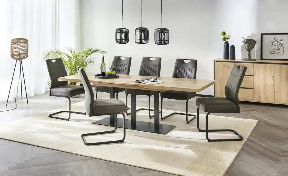 Dieser Esszimmerstuhl punktet mit der gekonnten Verbindung aus Stil und hoher Funktionalität. Auf dem Stuhl mit Taschenfederkern sitzen Sie immer bequem. Das Fundament des Möbels ist ein Gestell, das aus schwarzem Metall besteht. Das Gesamtstellmaß des Möbelstückes beläuft sich auf 50 x 100 x 63 cm. Dieser Stuhl schafft auch in Ihrer Einrichtung eine behagliche Stimmung.Lieferung & Versand