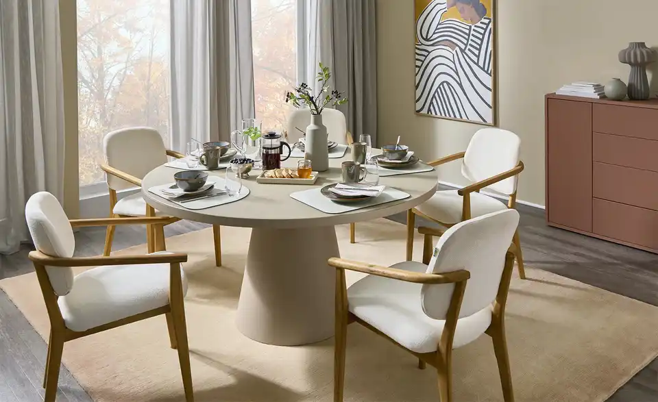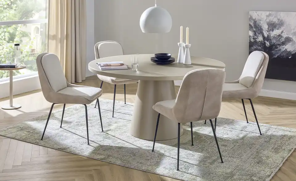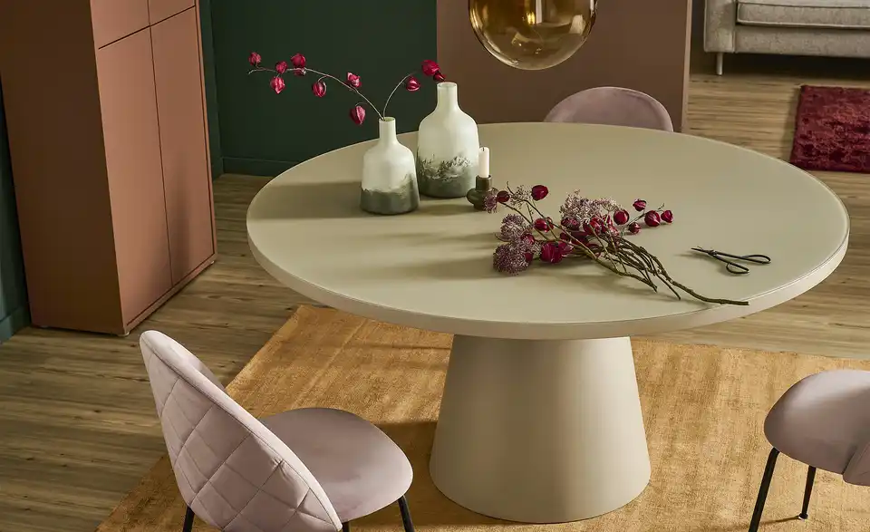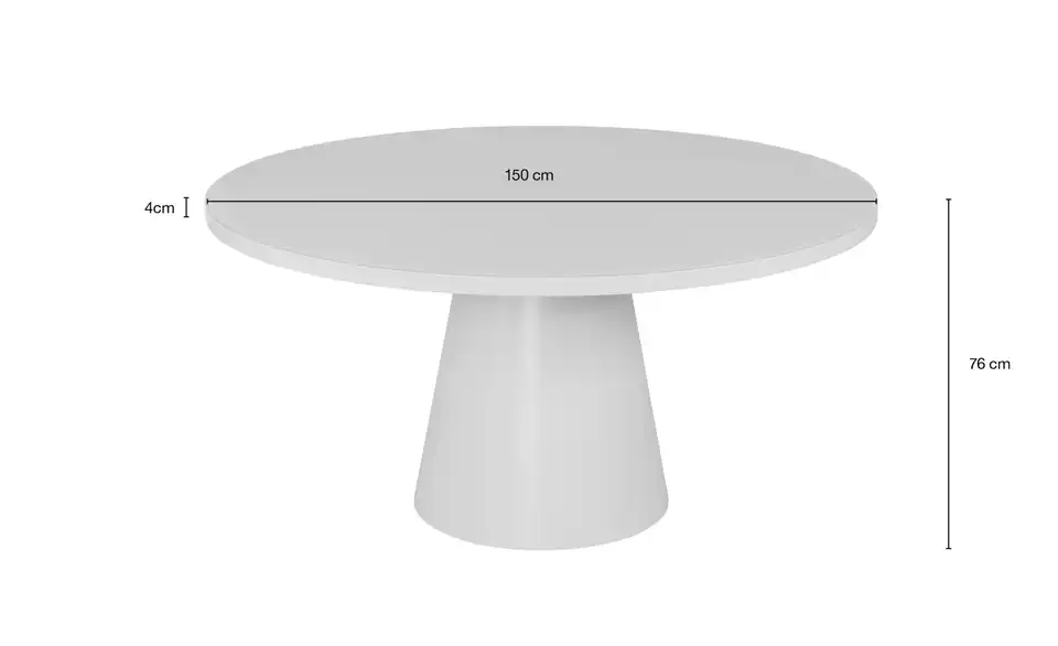 - Minimalistisches Design: Die runde Form und das konische Tischbein schaffen einen modernen, einladenden Look